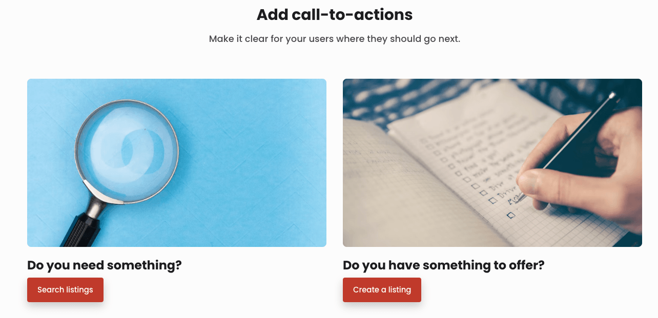 Columns sections divide blocks into pre-defined columns, and the operator can decide the number of columns between 1-4. The columns pattern is great for featuring specific options in parallel, whether they are benefits, testimonials, or featured locations.