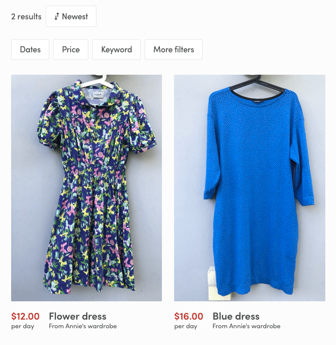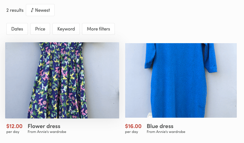 Like mentioned, the image variants above are used on the search page to present search results. However, those image variants do not suit all needs. This may be the case when listing images tend to have some vertical content. Let's say we are building a clothes sharing marketplace. If we use the variants mentioned above, we may end up with search results page like this: