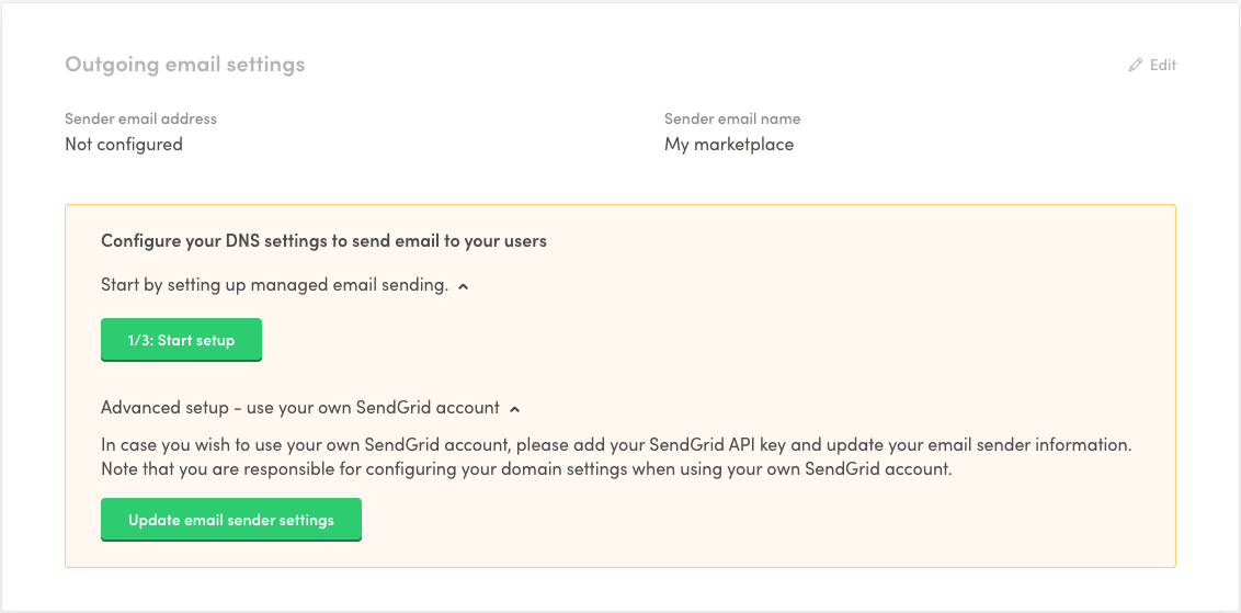 Setting up reliable email delivery is crucial for your marketplace to work properly. It is also important to brand your email sending name and address to look professional and polished.