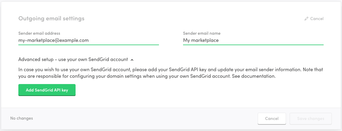 We offer two ways of managing email sending from your marketplace. The default option is to rely on a managed service offered by default in Flex. If you wish to obtain more flexibility and control over your email sending, you can integrate Flex with your own SendGrid account.
